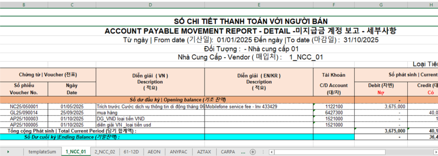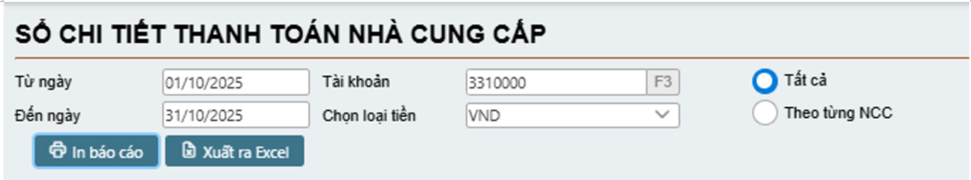 ### 2.1.1 Sổ chi tiết thanh toán nhà cung cấp
