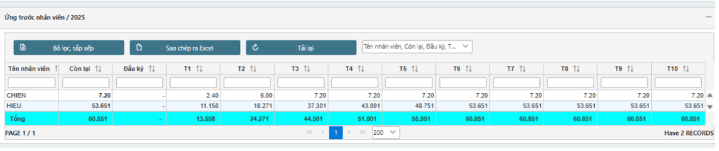 #### 10.6.1    Ứng trước nhân viên