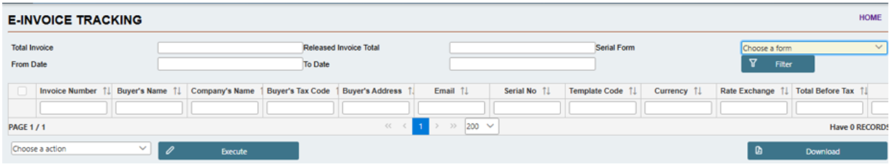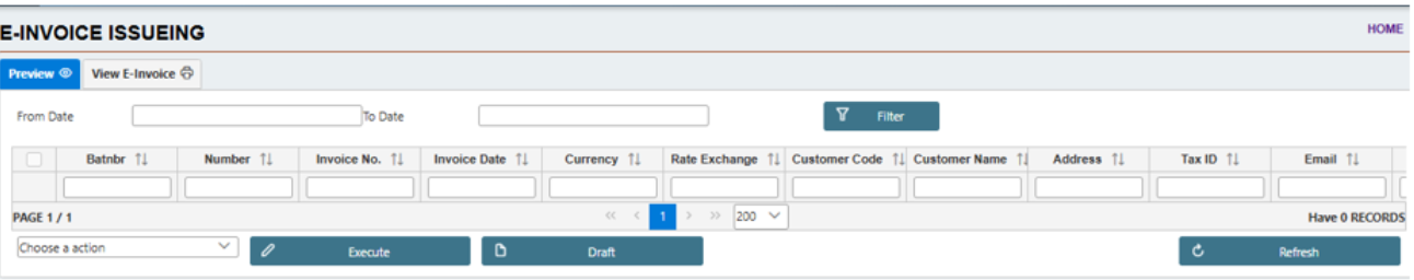 E-invoices after issues will be shown on this screen.