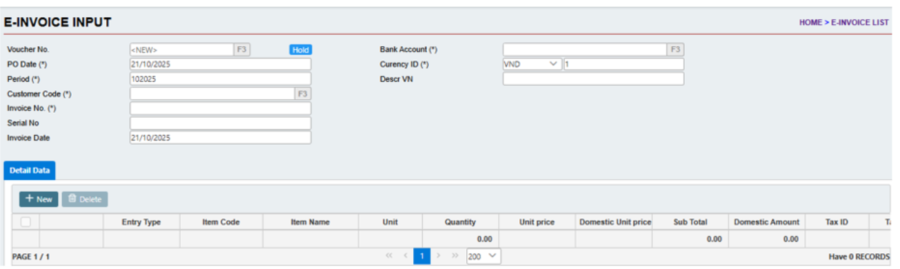 #### 7.2.1    E-Invoice Input