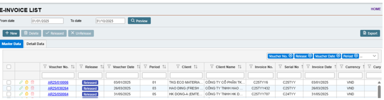 #### 7.2.2    Release Vouchers To E-Invoice