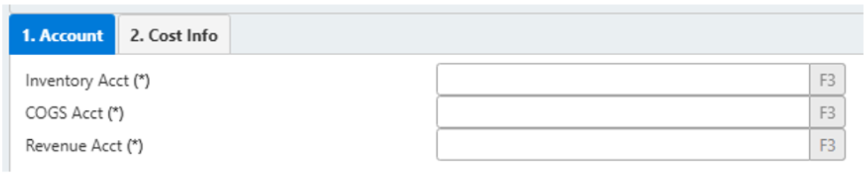 &#x20;       o   Inventory acct: press F3 to get the master data