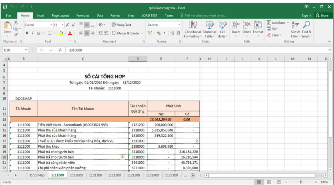 ·       Sheet DOCSMAP: Danh mục các tài khoản chi tiết có trên file excel báo cáo