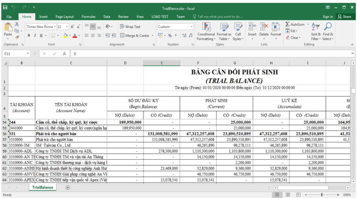 #### 1.5.1 Bảng cân đối số phát sinh (Trial Balance)