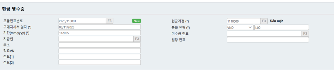 &#x20;         o   모듈전표번호(Receipt No.): 전표 번호를 입력하거나 소프트웨어가 순차적으로 자동 기입