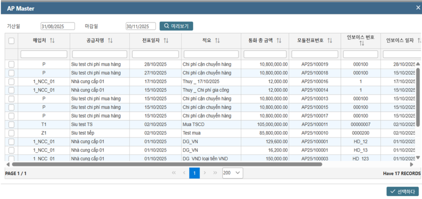 ·         체크박스를 통해 1개 또는 다수의 전표를 선택