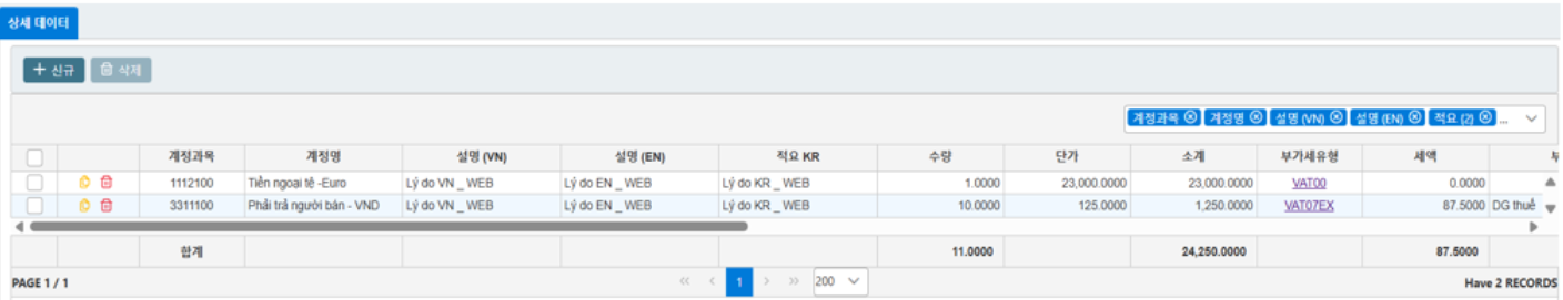 &#x20;         o   적요 (VN - EN): 일반내역 부분에 입력된 자료가 자동으로 적용됩니다.