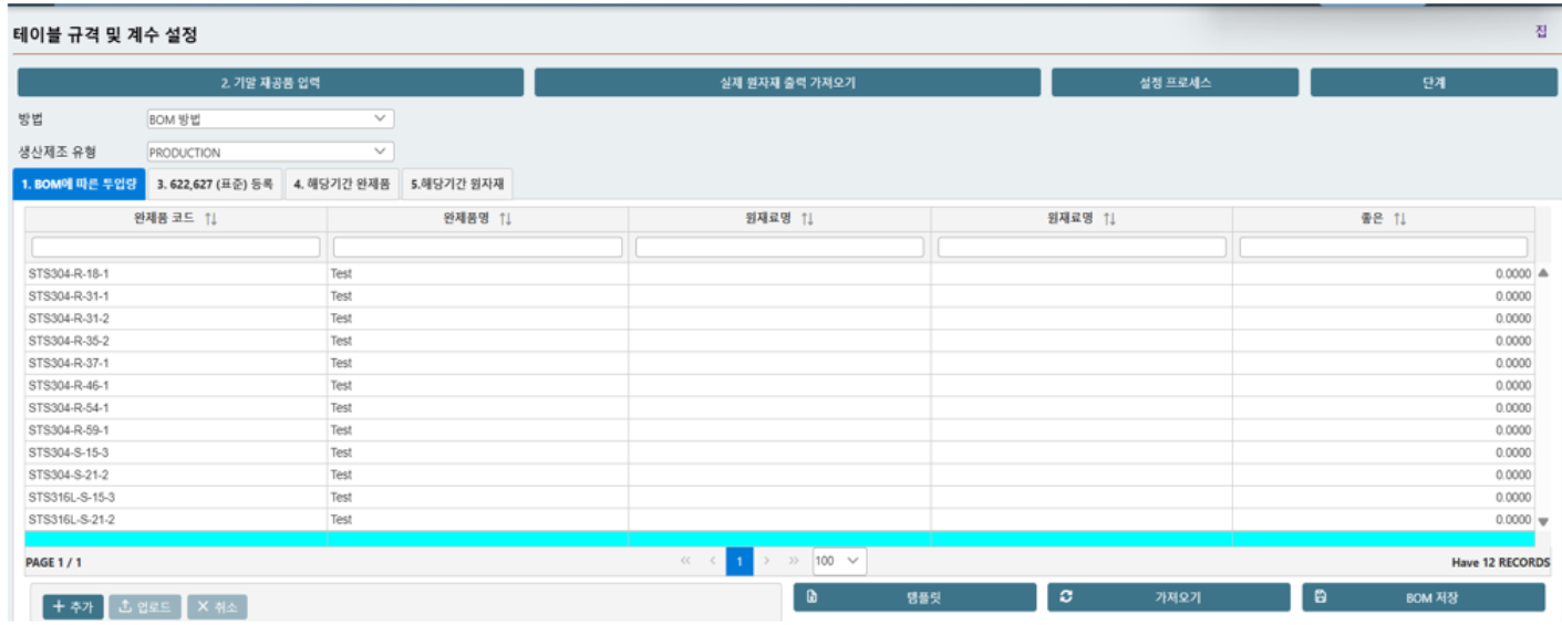 a. 표준 원재료, 노무비 및 제조경비(BOM)에 따른 제품제조원가 계산 회사가 재료비, 노무비 및 제조경비 사용 표준을 설정한 경우 적용 가능합니다.