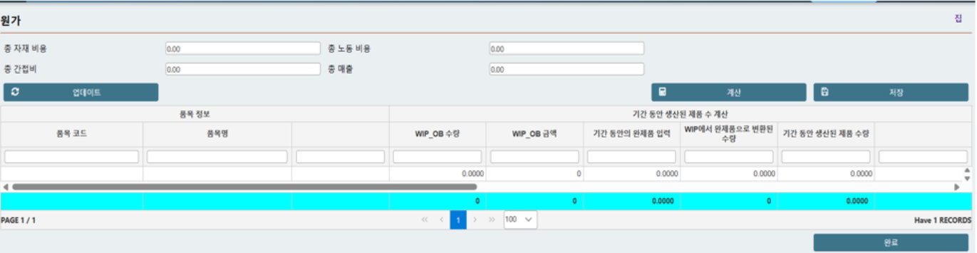 3단계: 제품제조원가 설정 / 계산 - 제품제조원가 설정