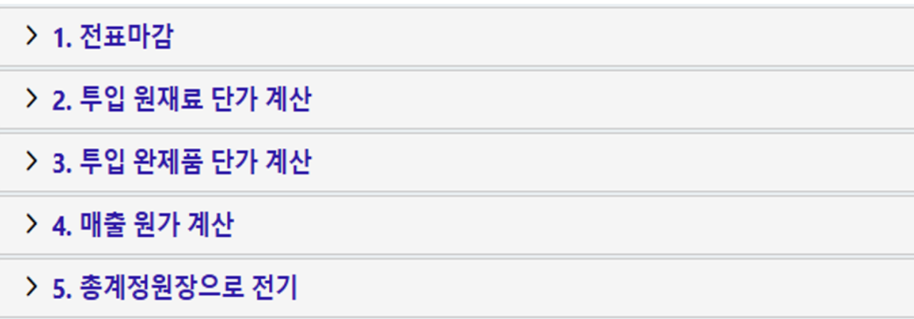 제품제조원가 또는 매출원가 계산을 수행하기 전의 첫 번째 단계입니다.