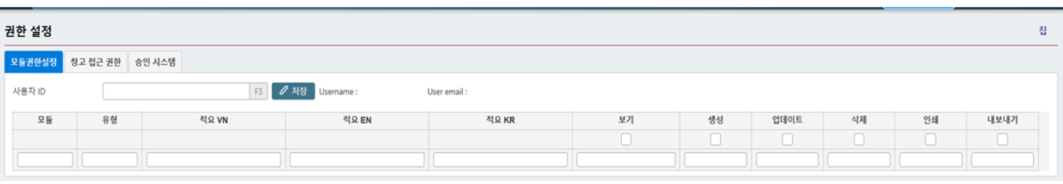 ·         결재 시스템 권한: 사용자가 승인 시스템을 사용할 수 있습니다.