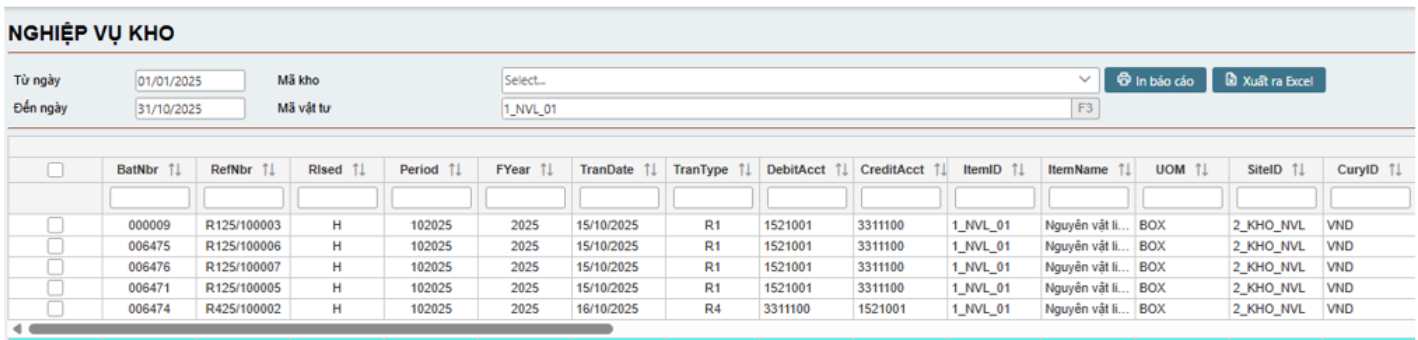 #### 6.3.2   Nhập xuất tồn